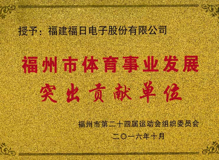 近日,公司被福州市第二十四屆運動會組織委員會授予“福州市體育事業發展突出貢獻單位”稱號。公司長期關心公益事業,熱心支持福州市體育事業的發展。本屆市運會歷時54天,比賽設項和參賽規模均為歷屆之最。公司獲得本次殊榮,是福州市第二十四屆運動會組織委員會對公司支持福州市體育事業發展的肯定。