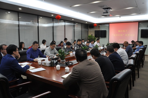 2018年10月29日,福建福日電子股份有限公司召開“雙百行動”宣貫會議,本部中層及以上管理人員、在榕成員企業(yè)、事業(yè)部主要負(fù)責(zé)人等參會。會上,本部資運部負(fù)責(zé)人介紹了公司“雙百行動”綜合改革實施方案。福建省電子信息集團副總經(jīng)理兼福日電子董事長卞志航出席會議并講話。
