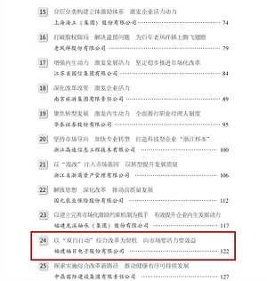 國(guó)資委改革辦有關(guān)負(fù)責(zé)人介紹,為進(jìn)一步發(fā)揮國(guó)企改革“雙百行動(dòng)”的示范引領(lǐng)作用,《改革樣本:國(guó)企改革“雙百行動(dòng)”案例集》共收錄了148家“雙百企業(yè)”鮮活改革實(shí)踐案例,展示了廣大“雙百企業(yè)”聚焦“五突破、一加強(qiáng)”的目標(biāo)任務(wù),在優(yōu)化法人治理結(jié)構(gòu)、健全市場(chǎng)化經(jīng)營(yíng)機(jī)制、積極穩(wěn)妥推進(jìn)混合所有制改革等方面的典型經(jīng)驗(yàn)和成效。