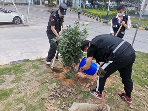 本次植樹活動,公司邀請園林綠化專業人員到現場指導,協助規劃樹苗在公司園區各綠化帶的栽種位置,并篩選適合公司園區栽種的樹苗種類。在植樹現場,大家揮鍬鏟土、扶苗填坑,或兩人一組,或三五成群,先后種植了李子樹、菠蘿蜜樹、桂花樹、樟樹等樹苗,為園區增添了一道靚麗的風景線。本次活動不僅培養了員工互幫互助、團結合作的精神,更讓員工進一步感知美麗公司是我們的家,公司美麗靠大家”。