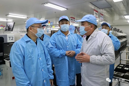 萬(wàn)卓培一行在大朗鎮(zhèn)相關(guān)負(fù)責(zé)人的陪同下,前往福日電子二級(jí)控股子公司廣東以諾通訊有限公司開(kāi)展調(diào)研,深入企業(yè)車間,了解企業(yè)生產(chǎn)情況以及未來(lái)發(fā)展規(guī)劃,并就企業(yè)提出的生產(chǎn)經(jīng)營(yíng)中問(wèn)題和困難進(jìn)行了交流。