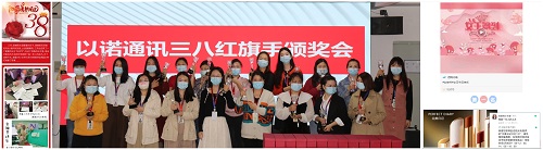 源磊科技、邁銳光電、以諾通訊等成員企業也通過贈送賀卡鮮花、線上有獎留言點贊、三八紅旗手頒獎會等活動為女職工送上節日的祝福。