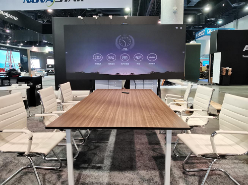 受全球疫情的持續(xù)影響,遠(yuǎn)程辦公、視頻會議、在線學(xué)習(xí)等概念已深深滲入人們的工作、學(xué)習(xí)與生活之中,全球市場對交互顯示產(chǎn)品的需求持續(xù)旺盛。本次展會上,邁銳光電智慧會議一體機(jī)憑借多功能智能集成一體化設(shè)計理念賺足了眼球。產(chǎn)品內(nèi)置頂級揚(yáng)聲設(shè)備和安卓智能系統(tǒng),集高清顯示、無線投屏、遠(yuǎn)程會議等多功能于一體,投屏?xí)r支持四分屏同時顯示,數(shù)據(jù)對比清晰直觀,讓開會演示與信息交流的體驗(yàn)更逼真,“刷新”了參展觀眾對LED顯示屏的認(rèn)知。