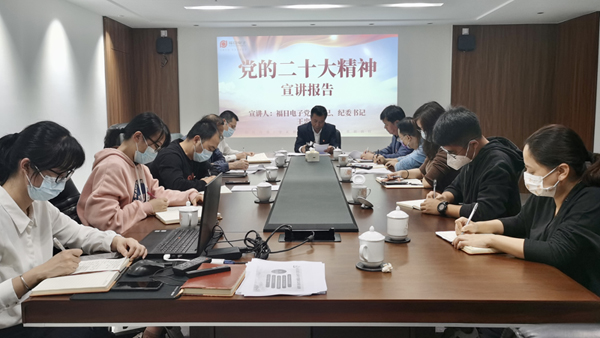 福日電子宣講團成員分別深入到各聯(lián)系企業(yè),帶領(lǐng)企業(yè)職工學(xué)習(xí)黨的二十大精神并作《以黨的二十大精神為指引 開啟高質(zhì)量發(fā)展新征程》專題黨課,全面領(lǐng)悟黨的二十大提出的新思想、新觀點、新論斷。宣講重點圍繞黨的二十大主題和主要成果、過去5年的工作和新時代10年的偉大變革、馬克思主義中國化時代化、中國式現(xiàn)代化、全面建設(shè)社會主義現(xiàn)代化國家的目標(biāo)任務(wù)和堅持黨的全面領(lǐng)導(dǎo)、全面從嚴(yán)治黨等六個方面,并結(jié)合成員企業(yè)所在的廣東省與福建省十年經(jīng)濟發(fā)展實際,對黨的二十大精神進行了全面系統(tǒng)的解讀,讓企業(yè)職工對二十大精神有了更深入的理解。